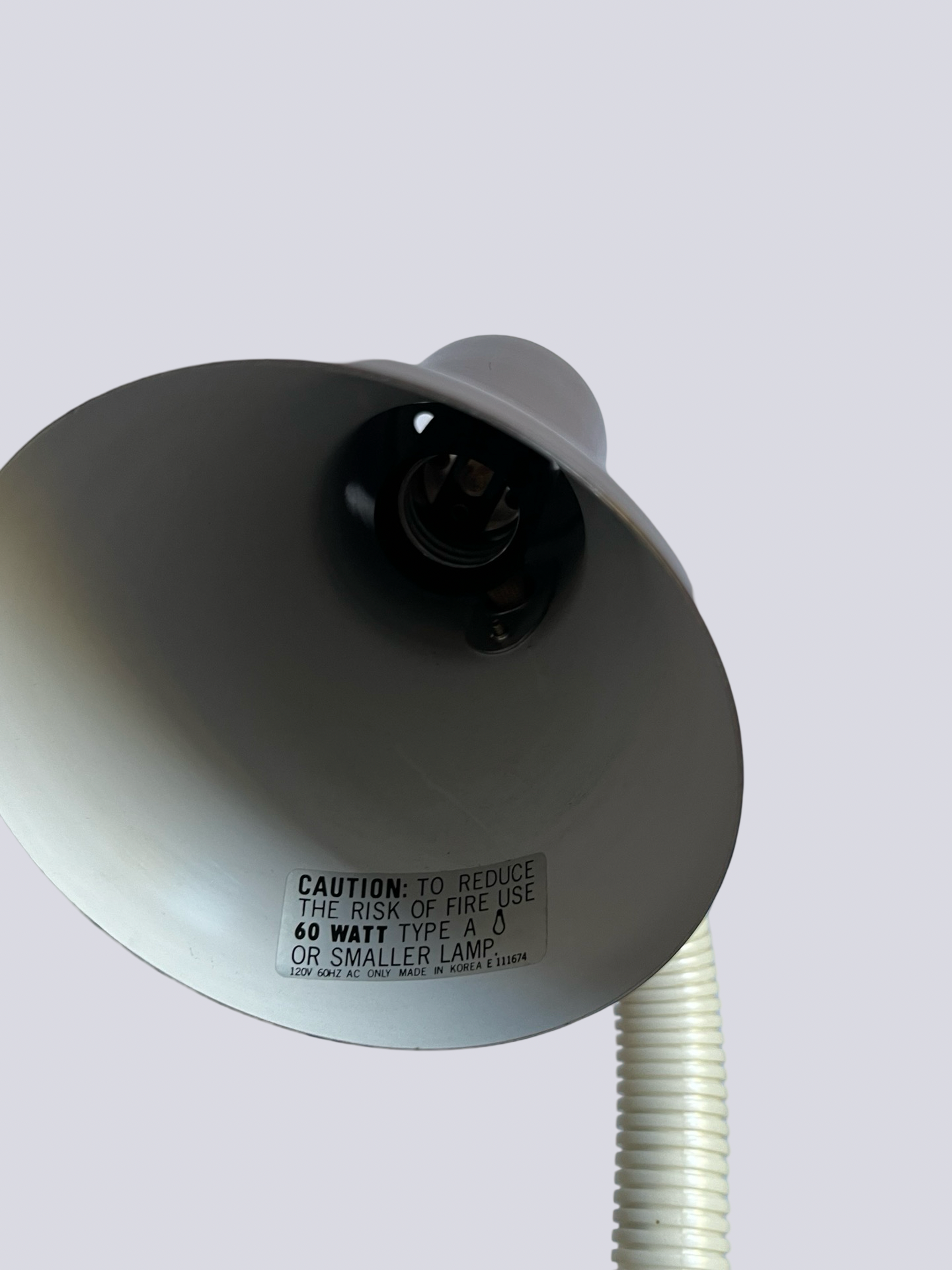 Vintage chocolate brown gooseneck desk lamp. Gorgeous angular metal with white tubular neck.1980s 1990s post modern, mid century style revival.