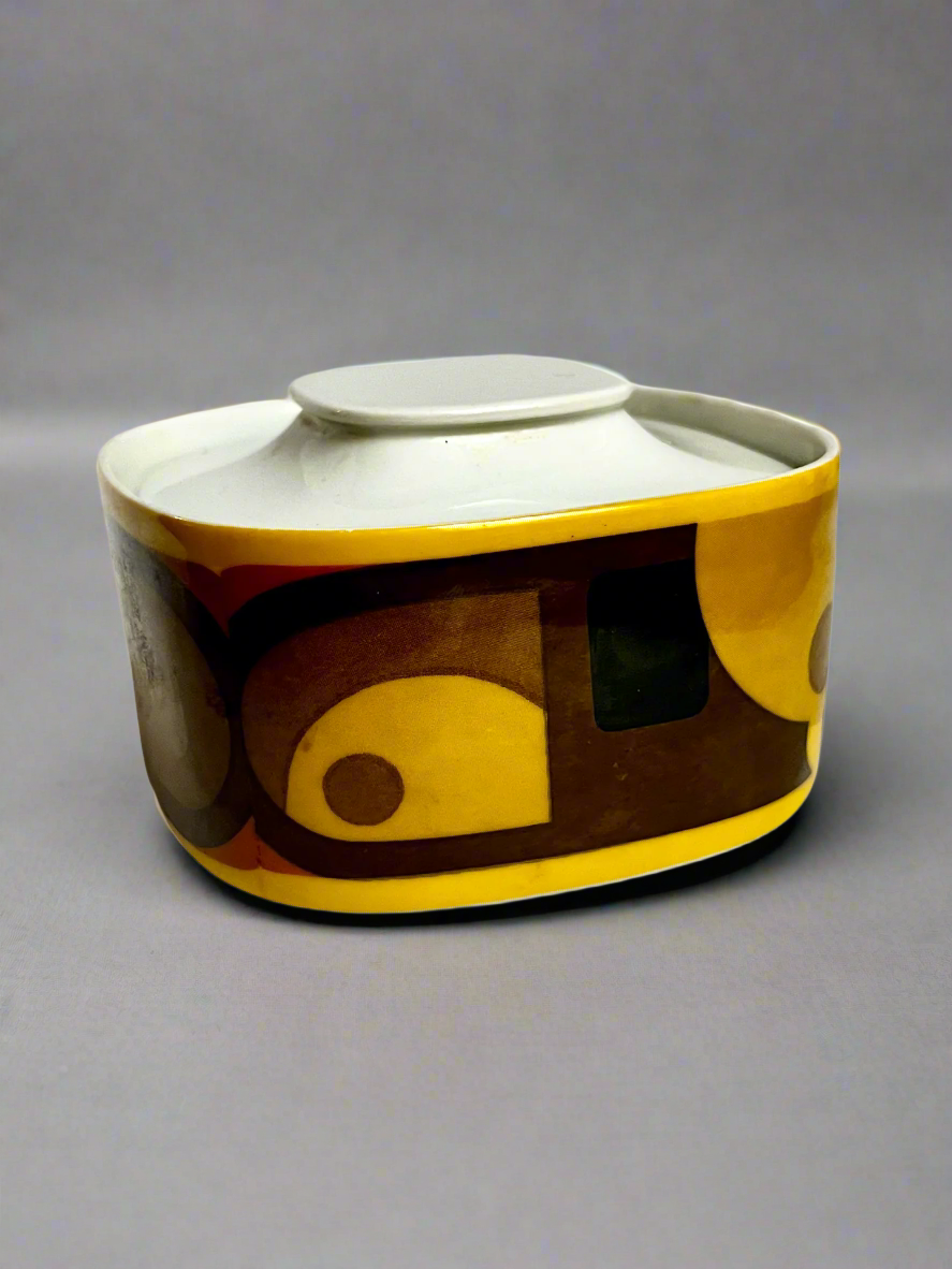 Funky mod ceramic sugar well. Part of the Transition collection from Block Langenthal. 1950s 1960s vintage tones of brown and mustard.