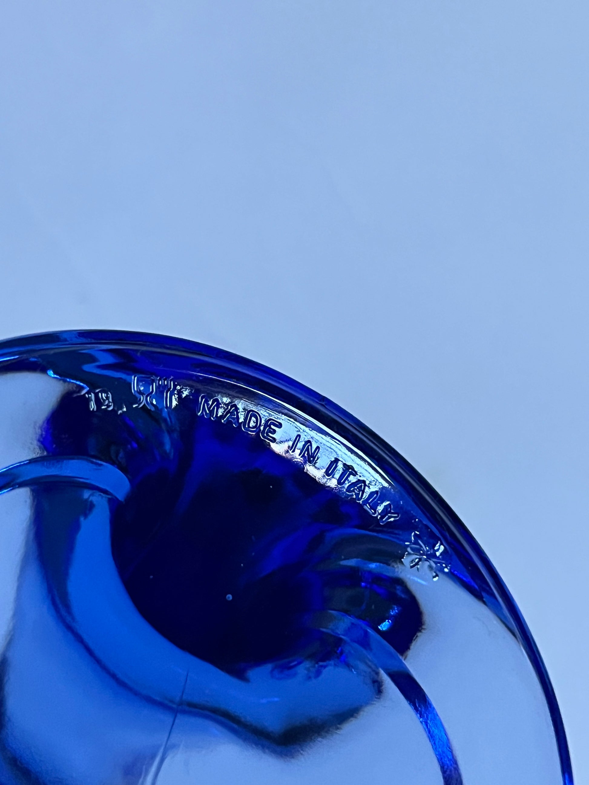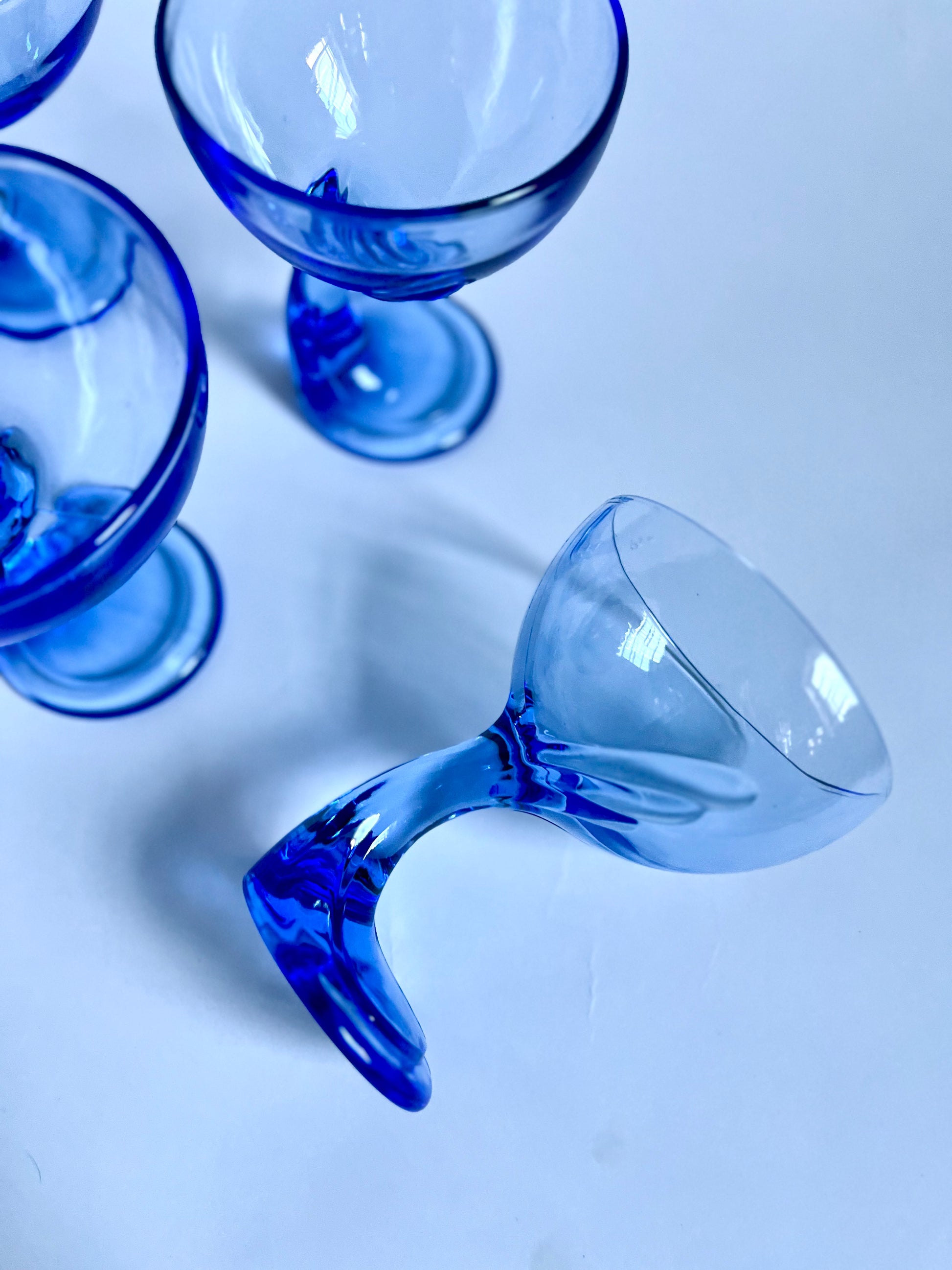 Vintage 1980s blue Jerba stemware - modern deco design by Bormioli Rocco, made in Italy. Set of 5 in great shape. Great for dessert or cocktails.