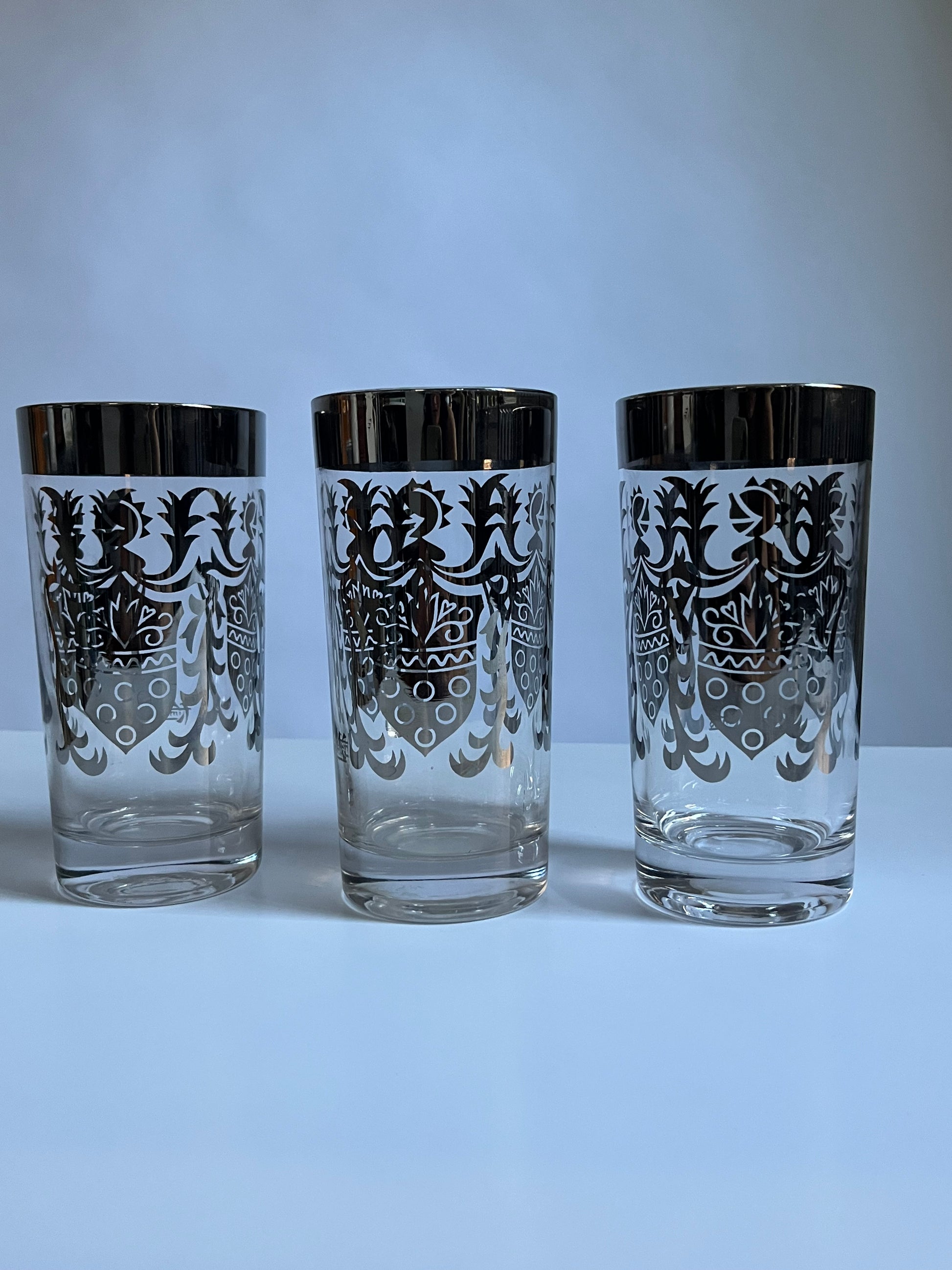 Kimiko Silver Crest Glasses | MCM Barware | Set of 3