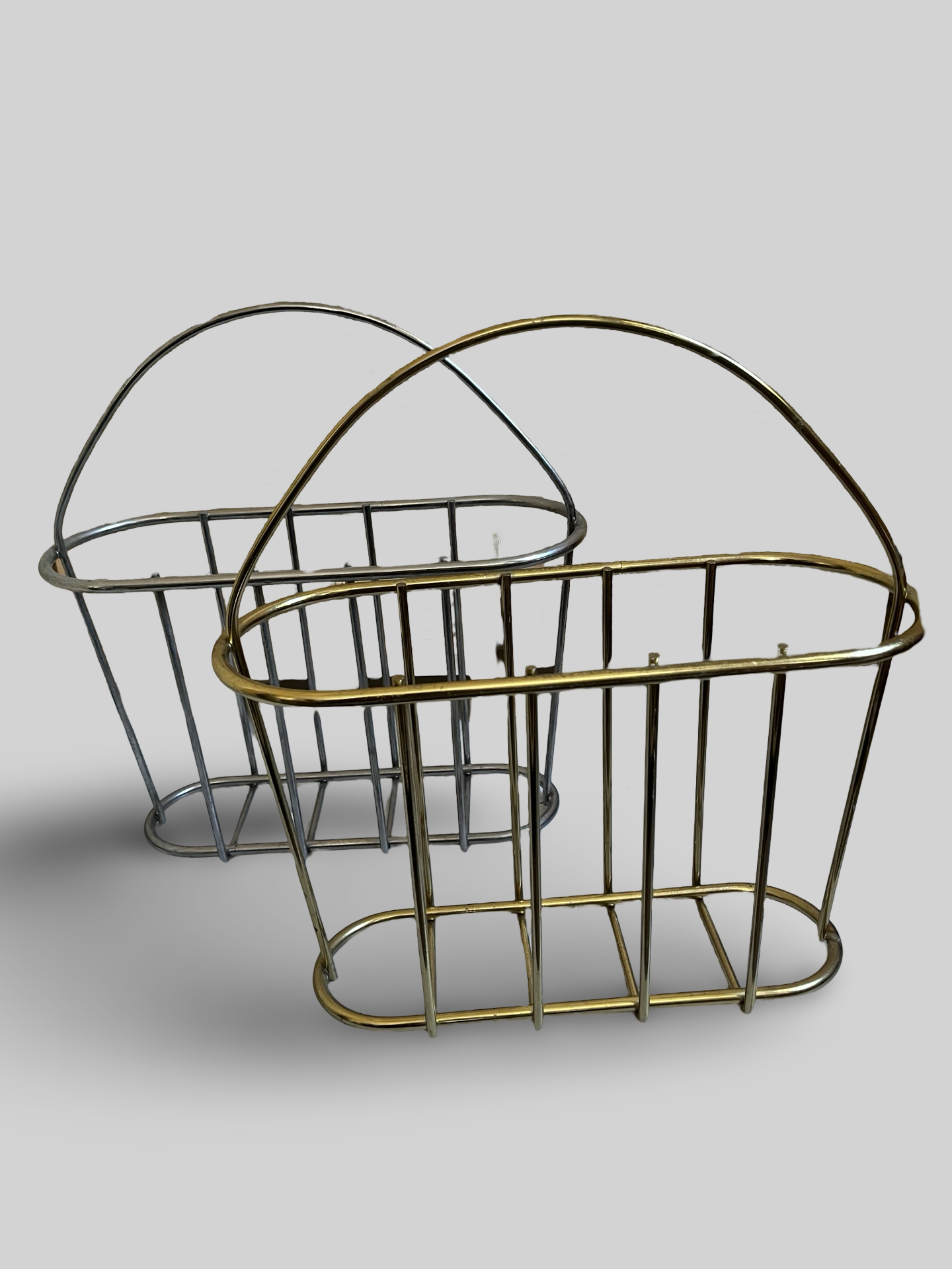 Awesome vintage modern chrome magazine, book, LP/record holder. Fun basket design with top handle.
